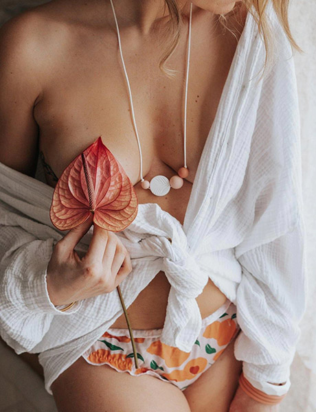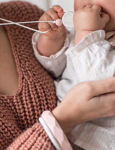 Son petit plus : Sa perle sensitive composé en collaboration avec une psychomotricienne. À l’avant, deux petites feuilles de palmier et au dos le mantra “Love” font de lui un parfait compromis entre accessoire de puériculture et accessoire de mode.