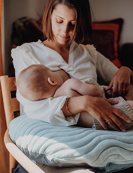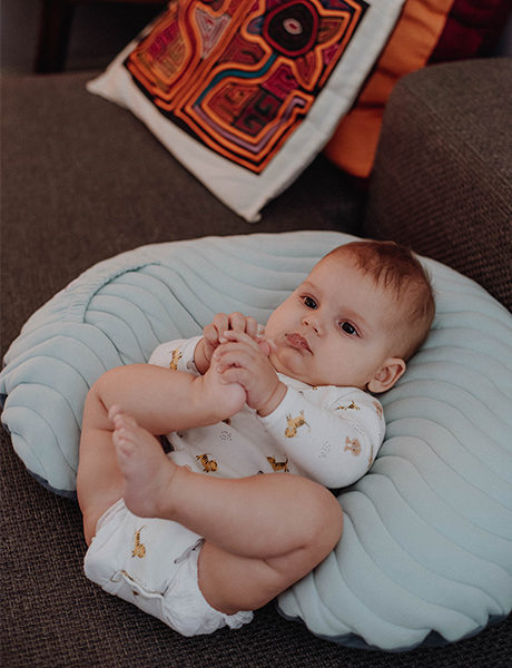 Un coussin comme un cocon, qui permet ausi de poser ou d’assoir votre enfant pour vous permettre de souffler un peu.