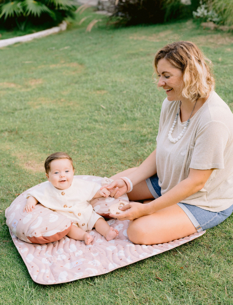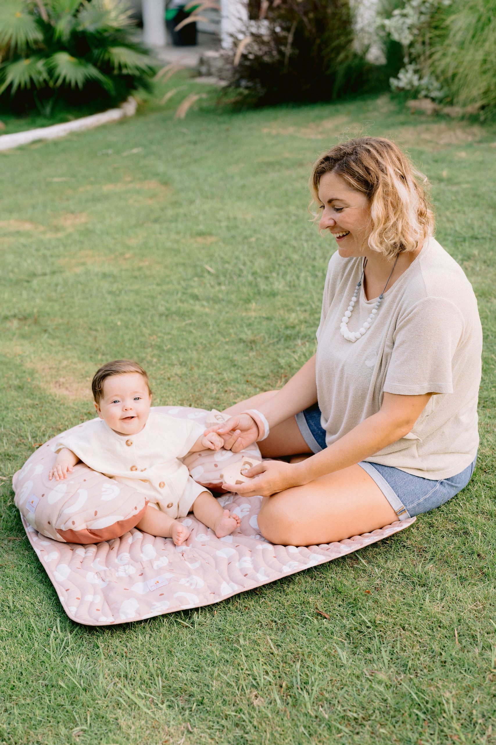 Que ce soit à la maison quand votre bébé est sur le dos, ou bien en vadrouille pour vous assoir et lui donner le sein, notre tapis est idéal pour vous suivre dans toutes vos aventures.